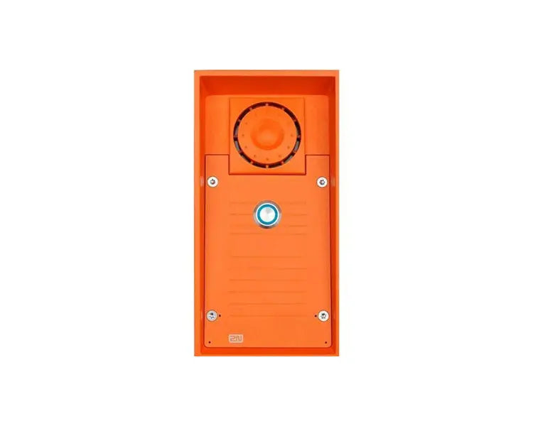 The 2N IP Safety 1 button + 10W speaker  is a modern emergency intercom that will ensure two-way communication between two remote locations when needed.  Its reliability is enhanced by robust construction and other practical properties that take into account its use in high-stress operations.  Its striking orange colour and illuminated button ensure that it is visible and functions even in crisis situations.