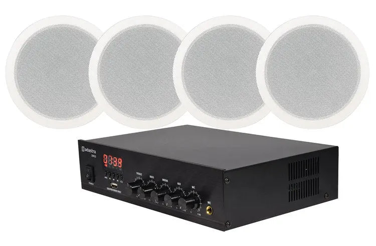 Affordable ceiling speaker pack, that offers 4 ceiling speakers for daily use within smaller room spaces. Ideal for more compact reception areas, dentists’, cafes and smaller bars.