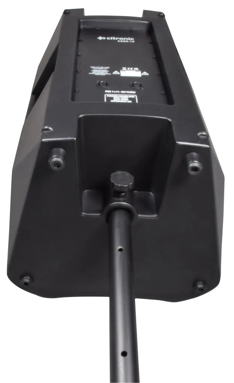 The Citronic CASA-12 is constructed from a durable molded plastic and has a metal front grille.