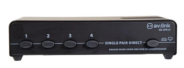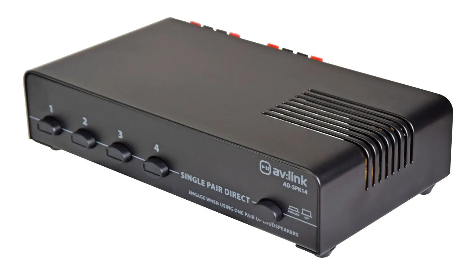 4-way switcher unit that allows the distribution of a stereo amplifier. Simply connect the output of an amplifier to the selector box, this output can then be distributed to up to four different stereo speaker sets in multiple locations, each speaker set can be individually activated via the push buttons on the front of the unit. Ideally suited for buildings where an independent sound control is required for different rooms or zones.