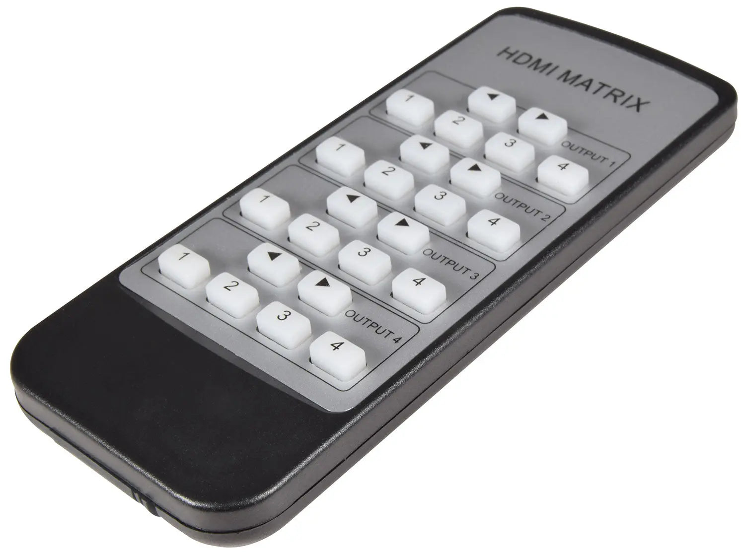 A 4K HDMI matrix to switch between 4 source devices and 4 display outputs. Use with HDMI cables of a combined 30m per input/output for 4K@30Hz and FHD resolutions, or a combined 10m per input/output for 4K@ 60Hz. SPDIF and 3.5mm stereo outputs allow the audio signal from HDMI output #1 to be simultaneously channelled through a separate sound system and/or headphones. Robust metal chassis incorporates an EDID switch panel for specific video and sound requirements and an RS232 port for serial data communication with a connected PC or laptop. Compatible with the latest 4K digital TV boxes making it ideal for hospitality and entertainment venues and supplied with IR remote to switch between sources for all outputs.