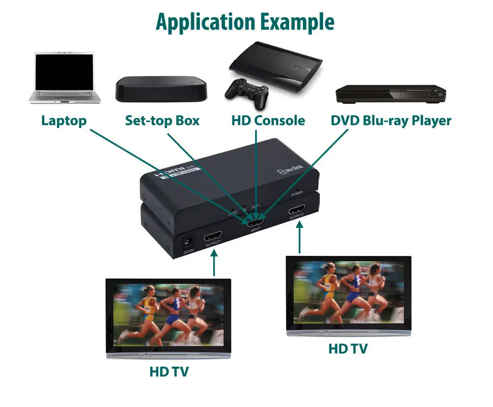 - Ideal for entertainment, hospitality and other commercial venues requiring multiple display feeds from a single HDMI source
