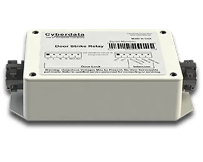 The CyberData Door Strike Relay module (011269) eliminates the need for the customer to source a separate relay and makes wiring an electronic door strike easier.