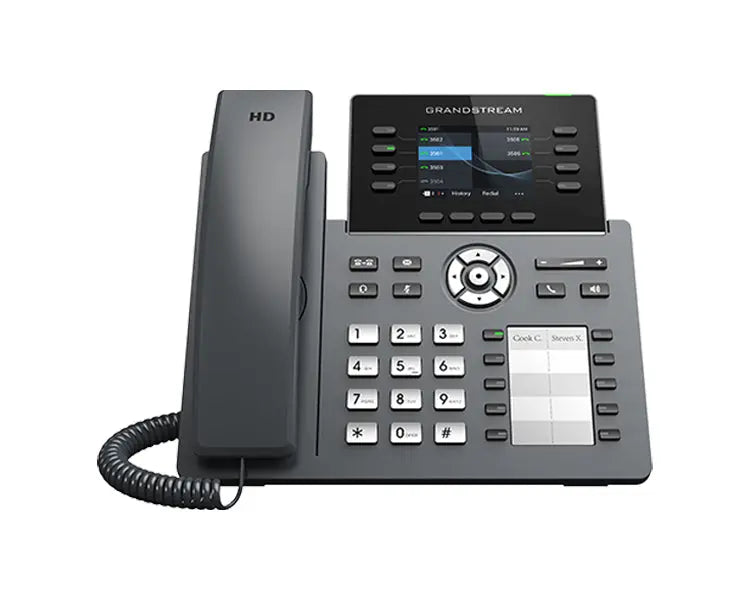 The Grandstream GRP2634 is a professional 8-line model designed with zero-touch provisioning for mass deployment and easy management. It features a sleek design and a suite of next-generation features including: 5-way voice conferencing to maximize productivity, integrated PoE & Wi-Fi, full HD audio on both the speaker and handset to allow users to communicate with the utmost clarity, EHS support for Plantronics headsets and USB to support Grandstream’s GUV Series Headsets.