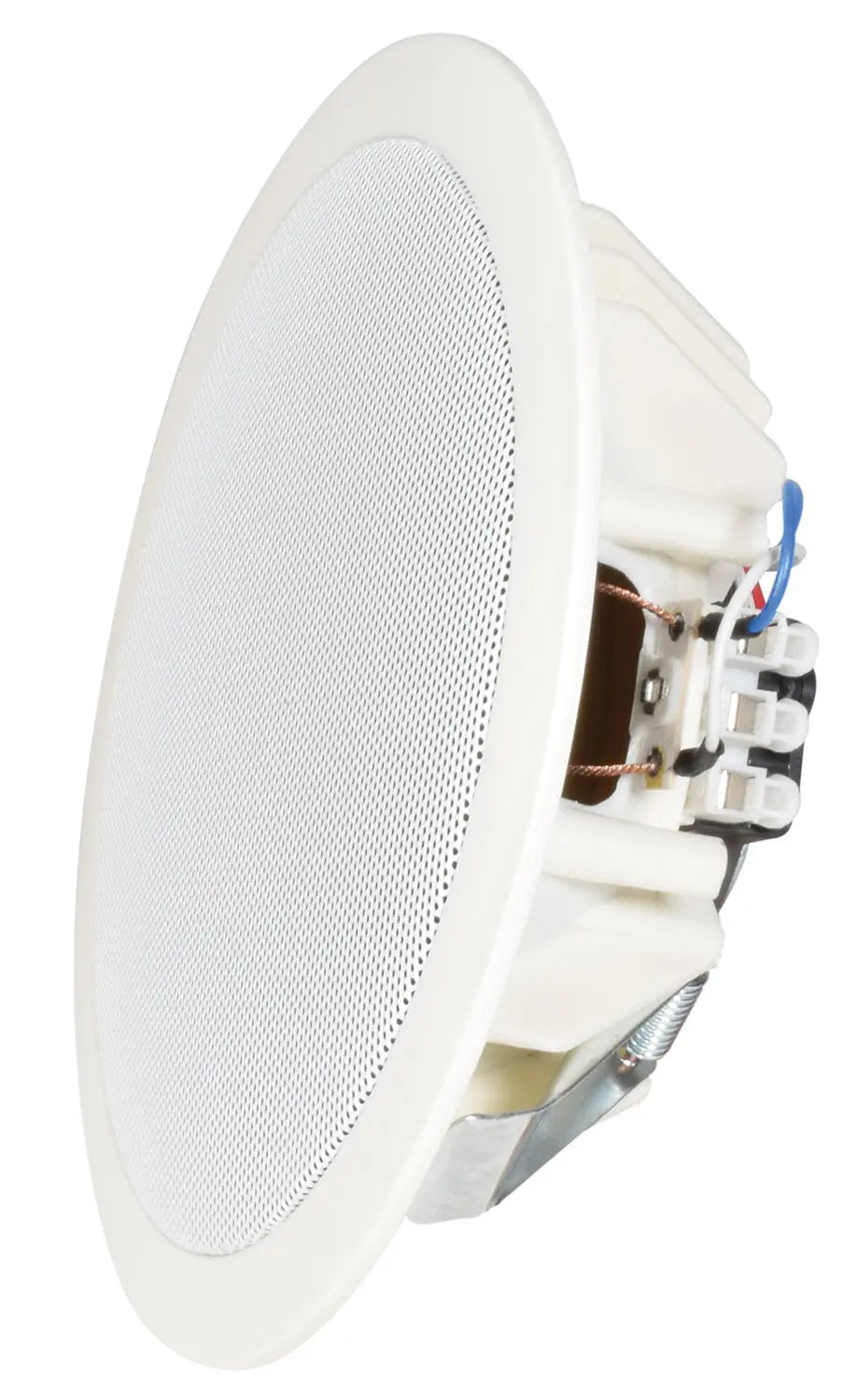 The flush-mount ceiling speaker features a 6.5" reinforced paper dual cone driver for full-range sound reproduction.