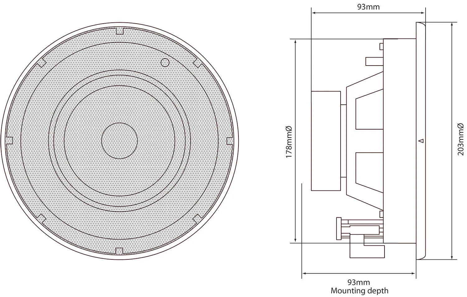 A high-grade ceiling speaker featuring a hi-flex polypropylene cone main driver for extended low frequency response, and a mylar tweeter unit for accurate HF reproduction. A flared wave-guide baffle helps to aid dispersion for wider coverage, and a precision 2-way filter network gives accurate high-low separation. The twist-fit grille enables quick and neat installation resulting in a premium quality sound delivery system.