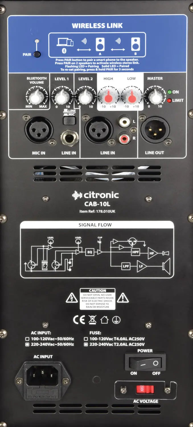 Citronic CAB-10L 10" 220W Active PA Speaker with Bluetooth