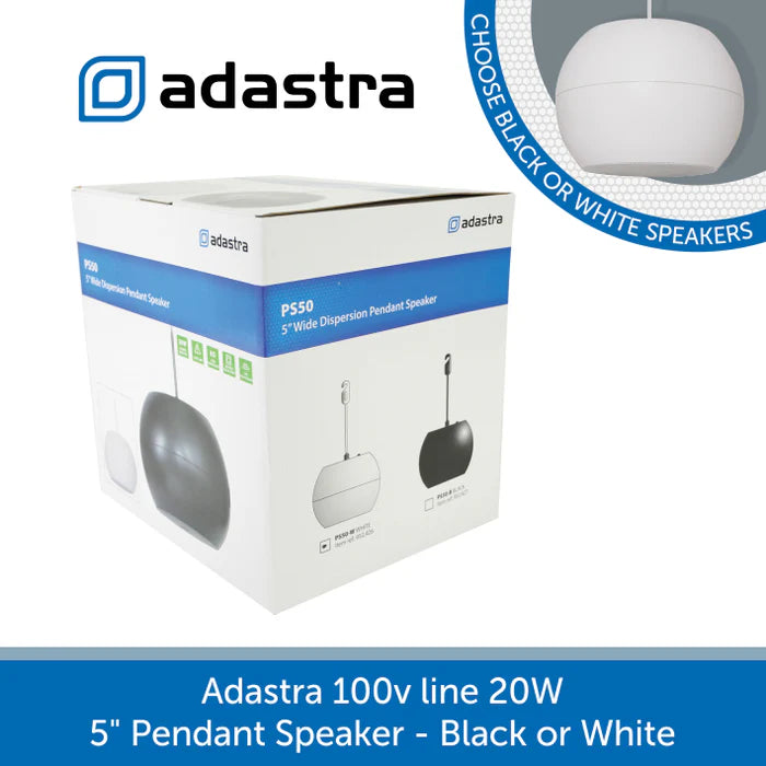 Adastra PS50 5" 20W Suspended Pendant Speaker, 100V / 8 Ohms (Black or White)