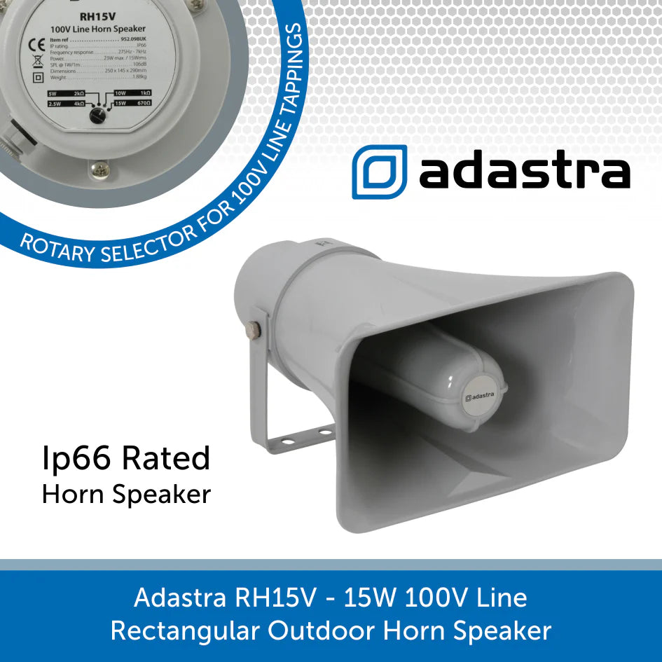 - Adastra RH15V - 15W 100V Line, IP66 Rectangular Outdoor Horn Speaker