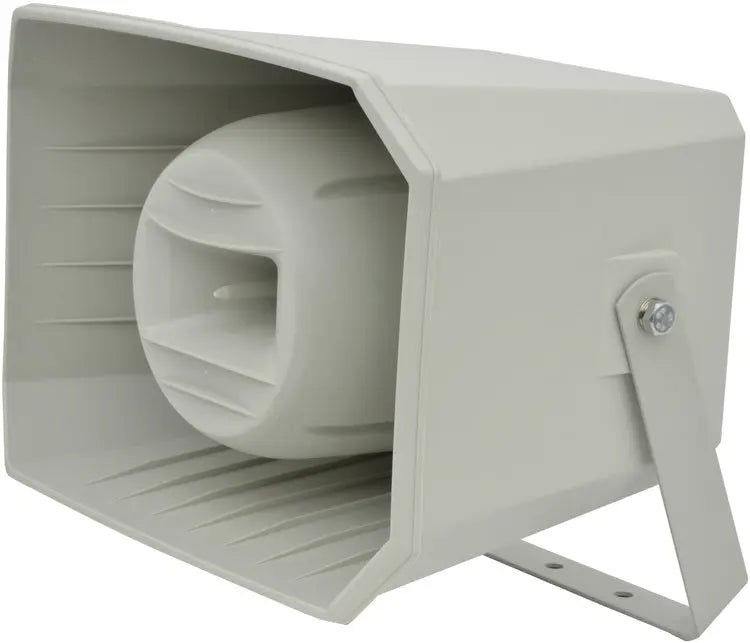 ABS full range horn speaker with 6.5" reverse mounted LF driver and front mounted 1" dome tweeter housed in an IP65 rated UV stabilised enclosure. Unlike standard outdoor horn speakers, this powerful unit has a full range output and is therefore suitable for background music as well as public address.