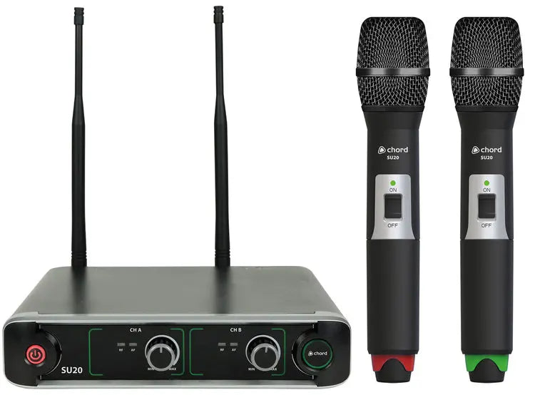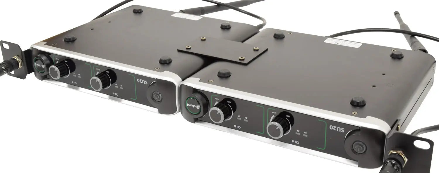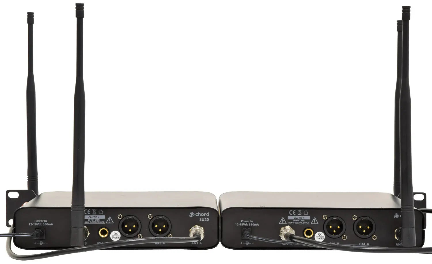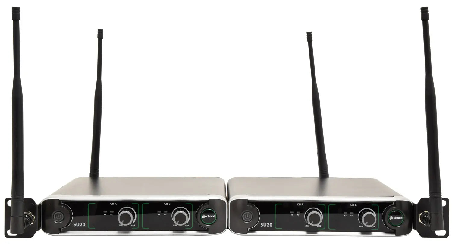 Dual UHF wireless microphone system with a compact receiver, supplied with hardware for mounting 1 or 2 units into a 1U 19" rack space. BNC cables and detachable antennas are provided for rear or front mounting as required. Each transmitter is powered by 2 x AA batteries and the beltpack version is supplied with both neckband and lavalier microphones. Output is provided individually on balanced XLR connectors or mixed to a single 6.3mm jack socket. Providing all the functionality of a dual UHF system in a compact half-rack format.