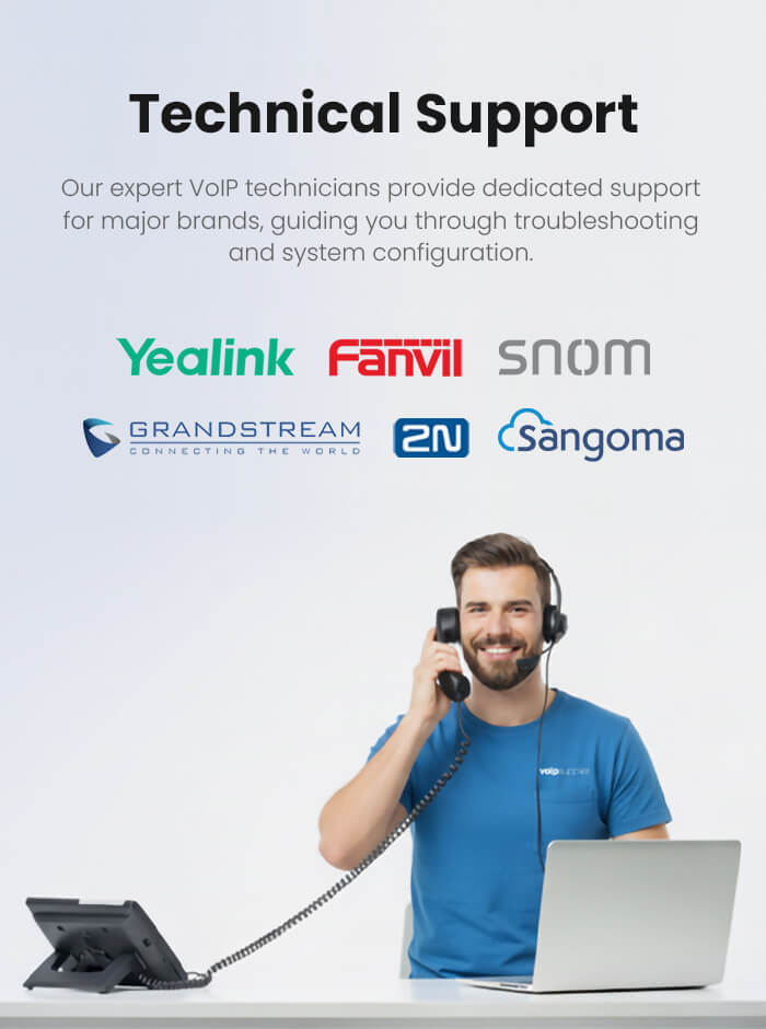 VoIP Supplies provides expert technical support to help you troubleshoot and configure your VoIP equipment. With a range of support packages available, you get fast, dependable help when you need it most.
