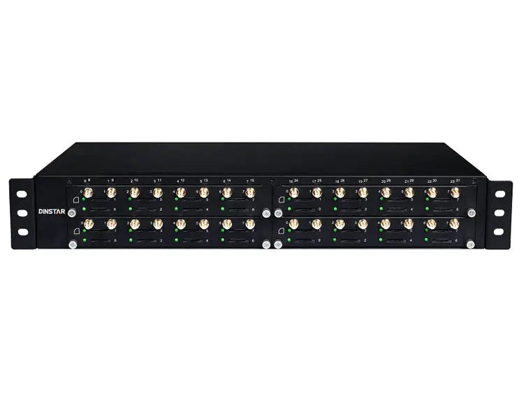 The Dinstar UC2000-VG-32T is a 32 channels wireless gateway based on DINSTAR new hardware platform and powerful embedded CPU, leveraging state-of-art and latest VoIP / SIP technology, which enables the smooth transit between 4G/3G/2G mobile network and VoIP networks. Adding LCD display on DINSTAR old classic design, makes this model easier to manage for users. Moreover, with open API, it allows users to build their own application software to send SMS/USSD messages or bulk SMS messages, or push their text messages from email, HTTP etc. It is suitable for enterprises, multi-site organisations, call centers and areas with limited landline like rural area to cut down telephony costs and enable easy & efficient communications.