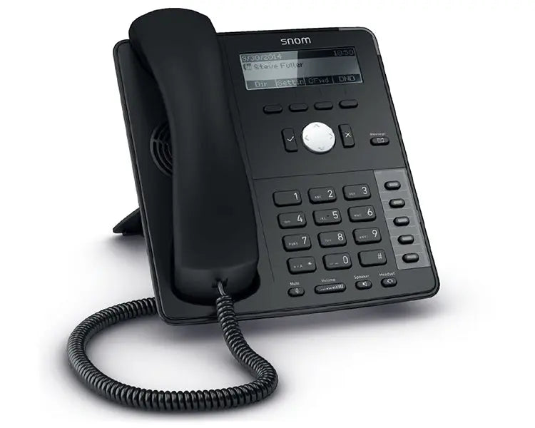 Featuring a four-line black and white graphical display, the Snom D715 also has four context-sensitive keys and an intuitive, user-friendly menu. Five programmable keys with built-in LEDs for visual call indication give the user flexibility with each function key configurable for a variety of one-touch telephony functions such as speed dial, busy lamp field, or presence indication.